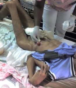 Nurse Nicholas prepares to feed a resident via a Jpeg feeding tube.